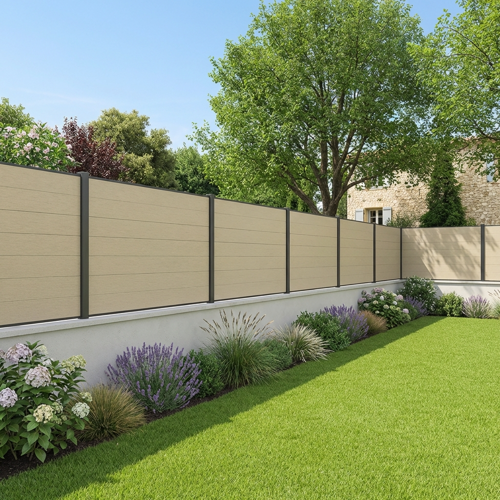 Le composite, en revanche, constitue un excellent compromis. Ce matériau innovant, mélange de fibres de bois et de résines polymères, allie la durabilité d’un brise vue moderne à la noblesse d’un rendu naturel. Il ne se fend pas, ne grise pas et ne demande aucun traitement lourd. Résistant aux intempéries, le composite est idéal pour une clôture au sol ou une clôture sur muret en béton, aussi bien en zones urbaines qu’en bord de mer.